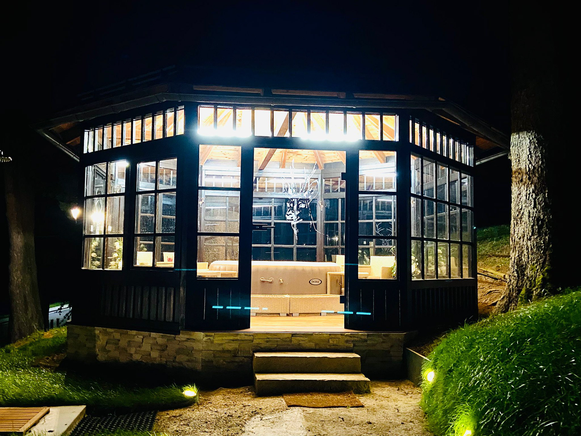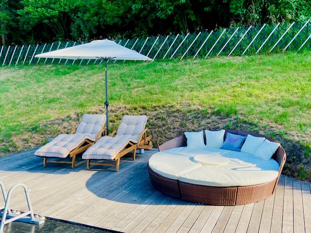 besteht aus einem großzügigen Fitnessraum mit modernsten Geräten, einer Infrarotsauna, einem outdoor Pool sowie einem überdachten Jacuzzi für 6 Personen.